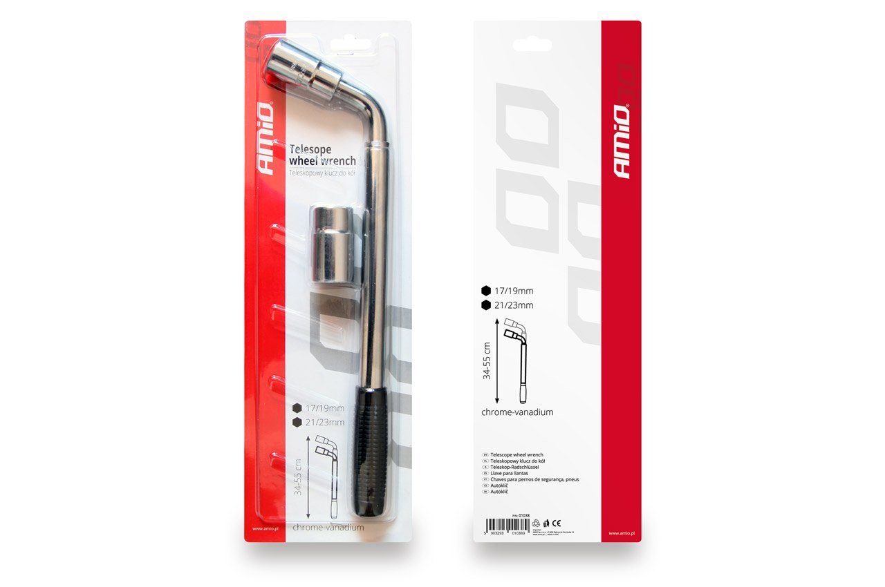 Cheie telescopica pentru montarea si demontarea rotilor cu o lungime variabila intre 34-55 cm si maner antiderapant.