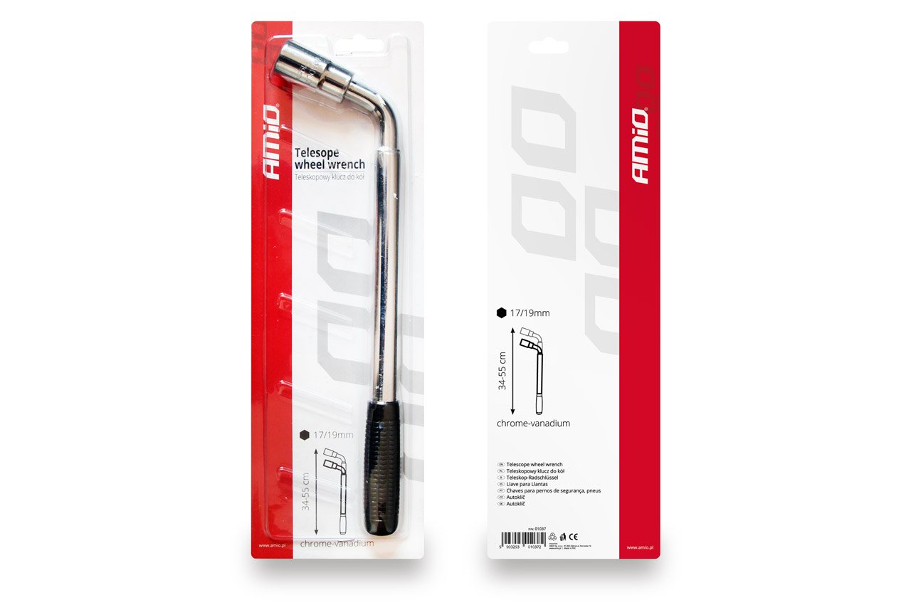 Cheie telescopica pentru montarea si demontarea rotilor cu o lungime variabila intre 34-55 cm si maner antiderapant.