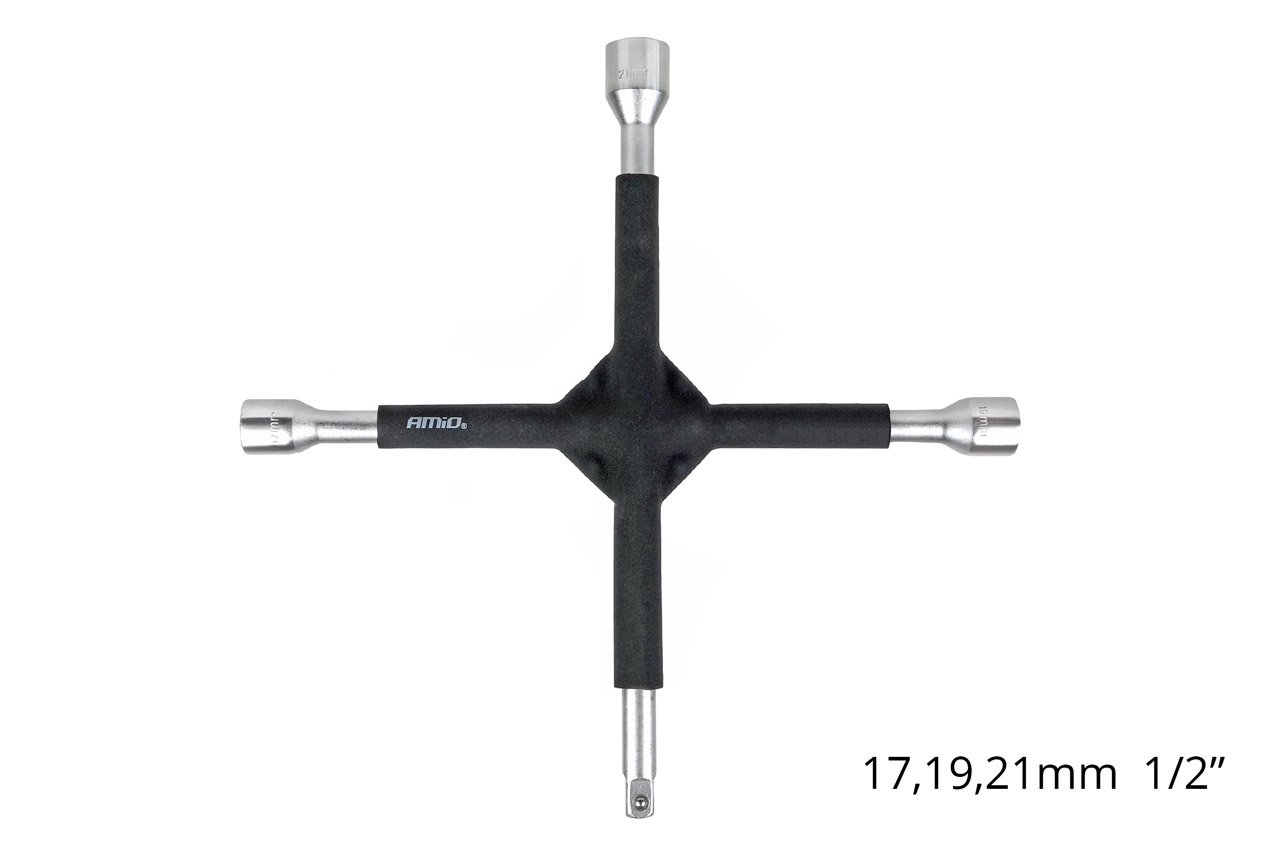 Cheie transversala cauciucata 17-19-21mm 1/2inch perfecta pentru montarea si demontarea rotilor autoturismelor.