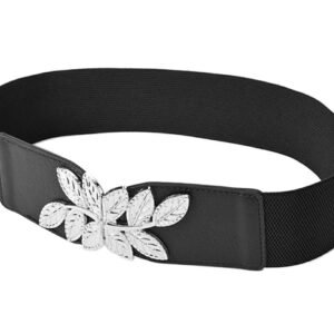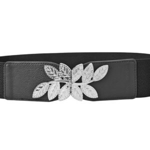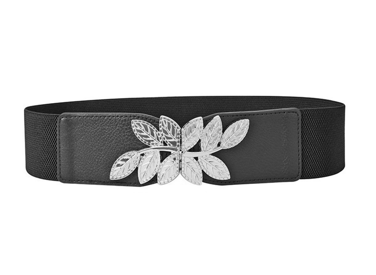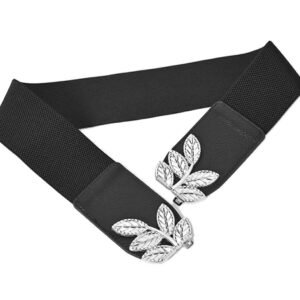 Curea elastică, largă. Prevazuta cu catarama dubla cu motiv de frunze, care ii adauga stil si eleganta. Cureaua este realizată din piele PU durabilă și rezistentă la abraziune.