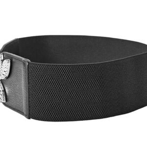 Curea elastica lata, culoare neagra, cu catarama metalica FRUNZE