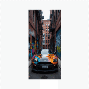 Stickerul printat este autoadeziv cu dimensiunea de 200 x 90 cm si poate fi aplicat pe orice fel de suprafete netede, lucioase, care ofera aderenta adezivului. In functie de dimensiunea ofiectului ce urmeaza a fi decorat, stickerul poate fi decupat la dimensiunea dorita inainte de aplicare.