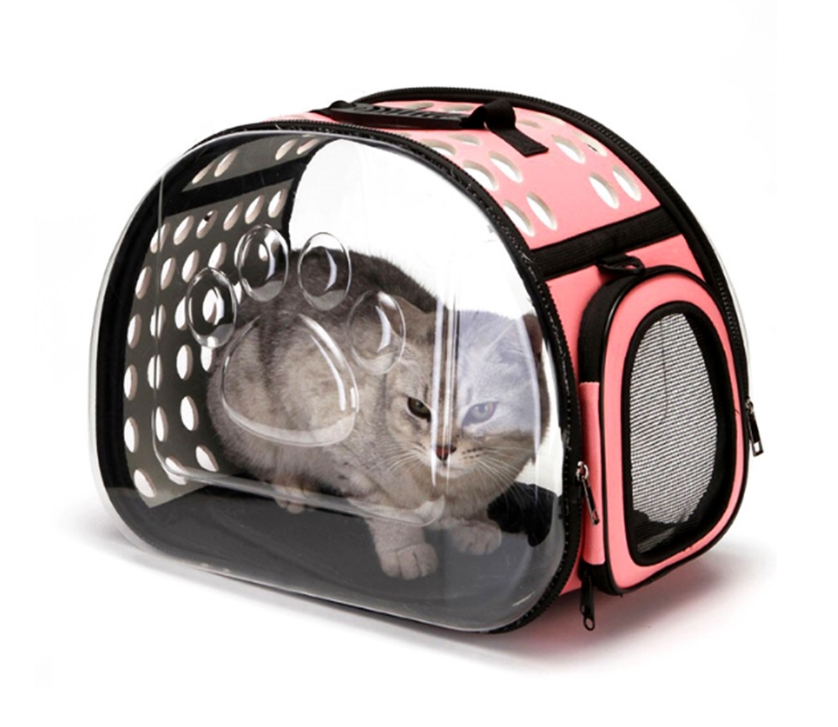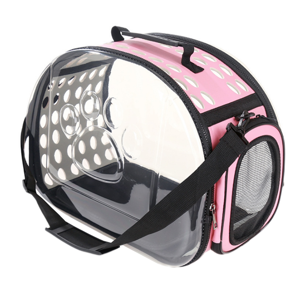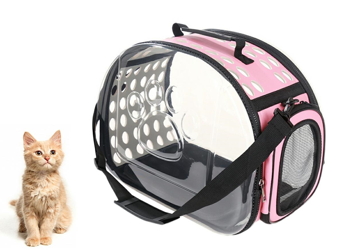 Geantă de transport de înaltă calitate pentru animalele de companie mici. Perfect pentru a ne muta pisica sau iepurele la orice distanță. Designul extrem de confortabil va asigura confort atât pentru noi cât și pentru animale. Materialul puternic din care au fost confecționate transportoarele, un mâner solid și o curea de umăr reglabilă asigură o utilizare lungă și fără probleme a produsului. Geanta este respirabilă și sigură pentru animalul de companie datorită sistemului de ventilație. Confortul de utilizare este asigurat și de un fermoar dublu pe ambele părți ale suportului. Pereții laterali transparenți asigură faptul că animalul este în contact cu lumea și minimizează stresul asociat cu transportarea acestuia.