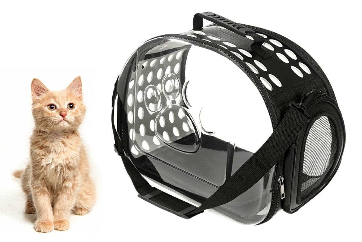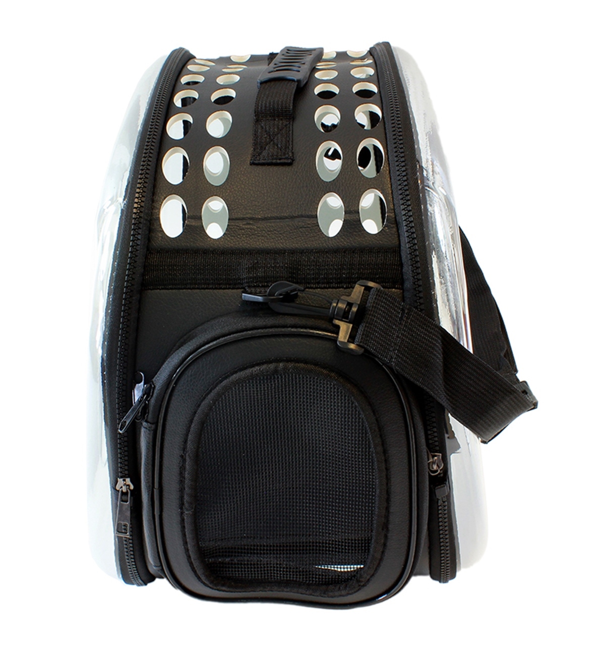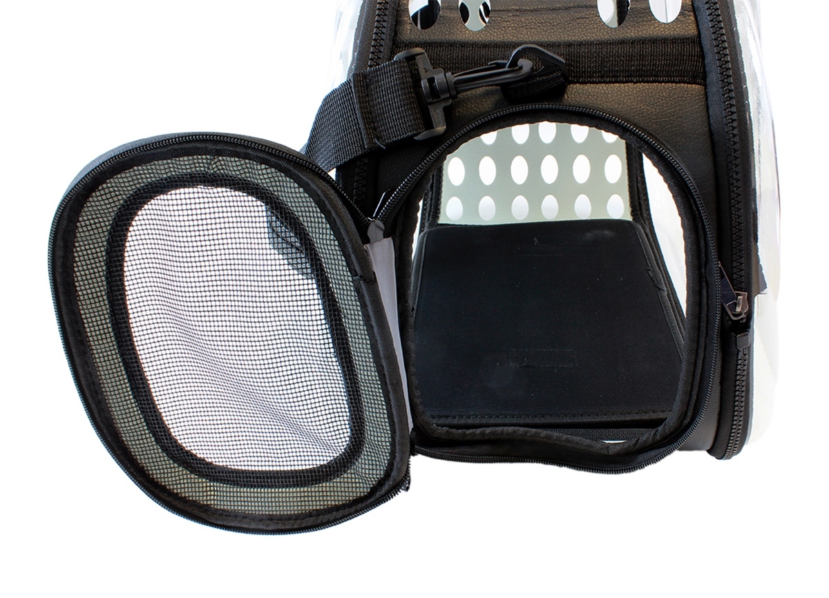 Geantă de transport de înaltă calitate pentru animalele de companie mici. Perfect pentru a ne muta pisica sau iepurele la orice distanță. Designul extrem de confortabil va asigura confort atât pentru noi cât și pentru animale. Materialul puternic din care au fost confecționate transportoarele, un mâner solid și o curea de umăr reglabilă asigură o utilizare lungă și fără probleme a produsului. Geanta este respirabilă și sigură pentru animalul de companie datorită sistemului de ventilație. Confortul de utilizare este asigurat și de un fermoar dublu pe ambele părți ale suportului. Pereții laterali transparenți asigură faptul că animalul este în contact cu lumea și minimizează stresul asociat cu transportarea acestuia.