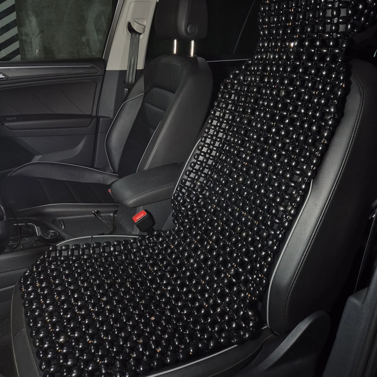 Husa Premium pentru scaun auto cu bile de masaj din lemn, dimensiune 122 x 42 cm, culoare Negru