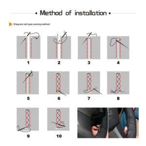 Montaj simplu, ata existenta in pachet se trece cu ajutorul acului direct prin cusatura existenta pe husa de volan astfel incat cusatura va capata un aspect de volan imbracat de fabrica.