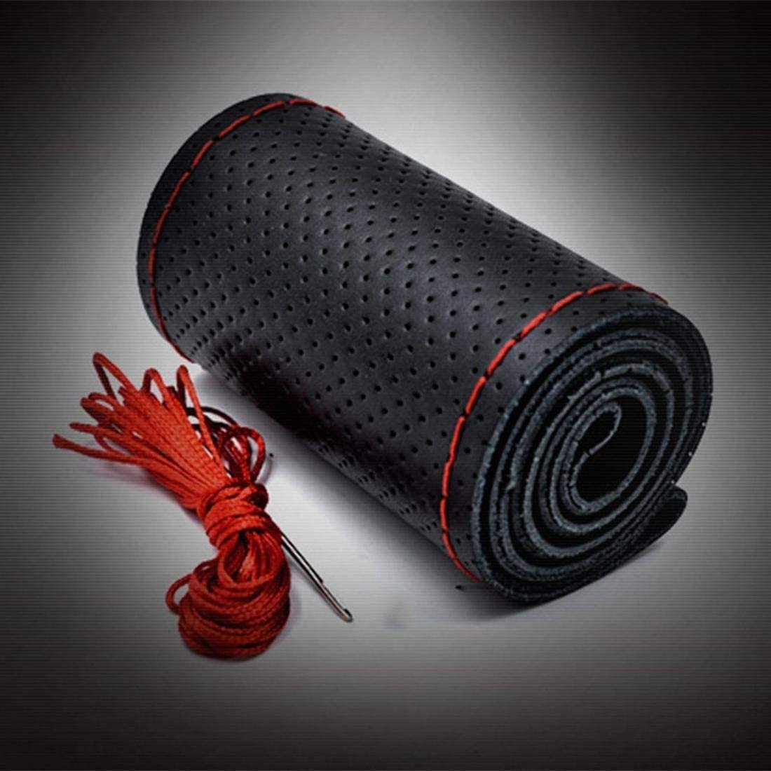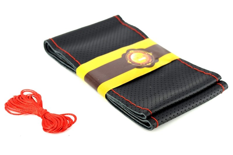 Husa volan din PIELE NEAGRA + ATA ROSIE, diametru 37 – 39 cm (se coase, aspect ORIGINAL)