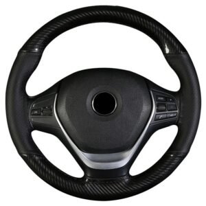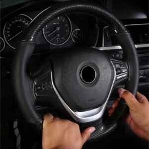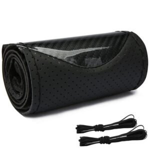 Husa volan din Piele Neagra Perforata + Carbon Black si ata neagra pentru cusut, marime M, diametru 37 – 39 cm