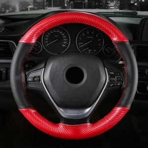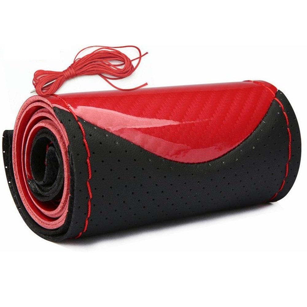 - 1 x Husa volan piele perforata marime M rosu + carbon cu cusatura rosie