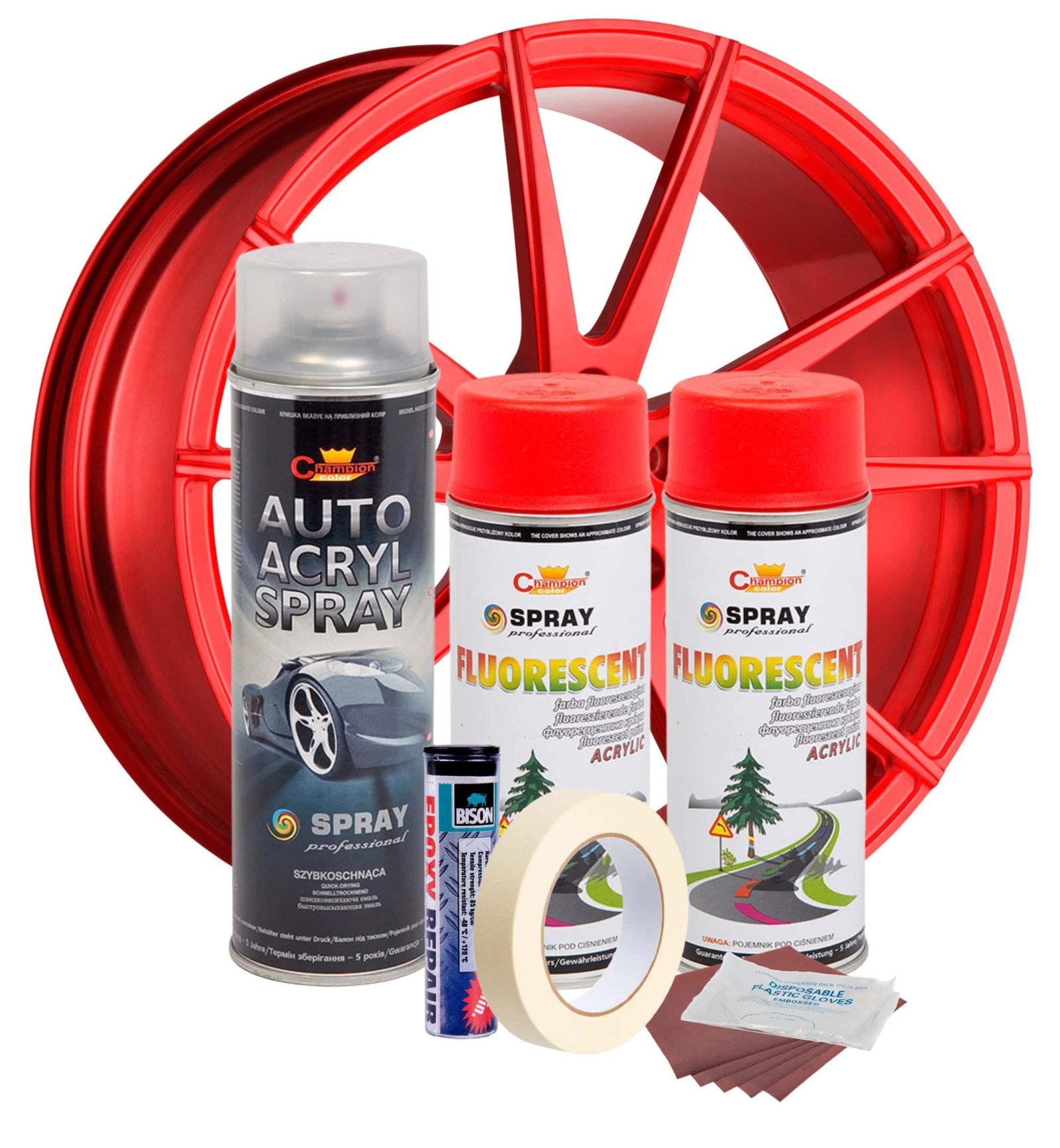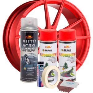 Kit complet reparatie si vopsire jante culoare Rosu Fluorescent, V2