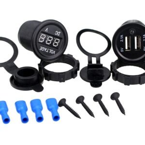 Priză de montare pe mașină cu două porturi USB de 5V și un voltmetru încorporat. Perfect pentru utilizare în mașini, motociclete, mopede, quad-uri și scutere, pe scurt în toate vehiculele care au o brichetă auto de 12V. Vă permite să utilizați două porturi USB încorporate cu un curent total de 3,1 A (2,1 + 1) și un voltmetru încorporat cu afișaj, permițând măsurarea curentă a tensiunii bateriei.