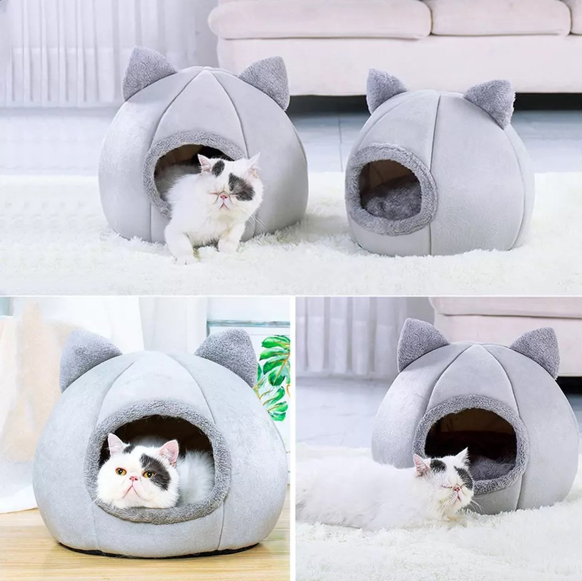 Un pat confortabil si estetic pentru animalul tau. Este foarte moale și potrivit pentru animalele de companie. Design unic în formă de cabină închisă cu urechi de pisică. Pereții groși și fundul din material antiderapant asigură confort și siguranță animalelor noastre. Bârlogul a fost umplut cu spumă moale și deformabilă. Strat inferior confortabil, moale.