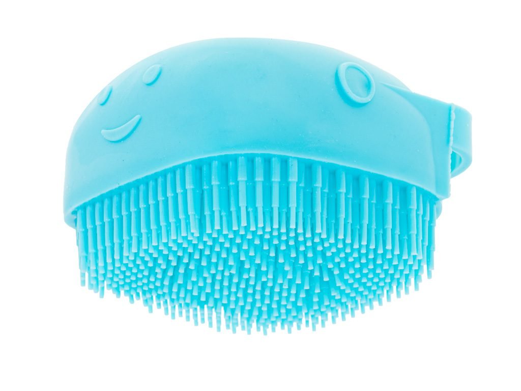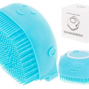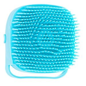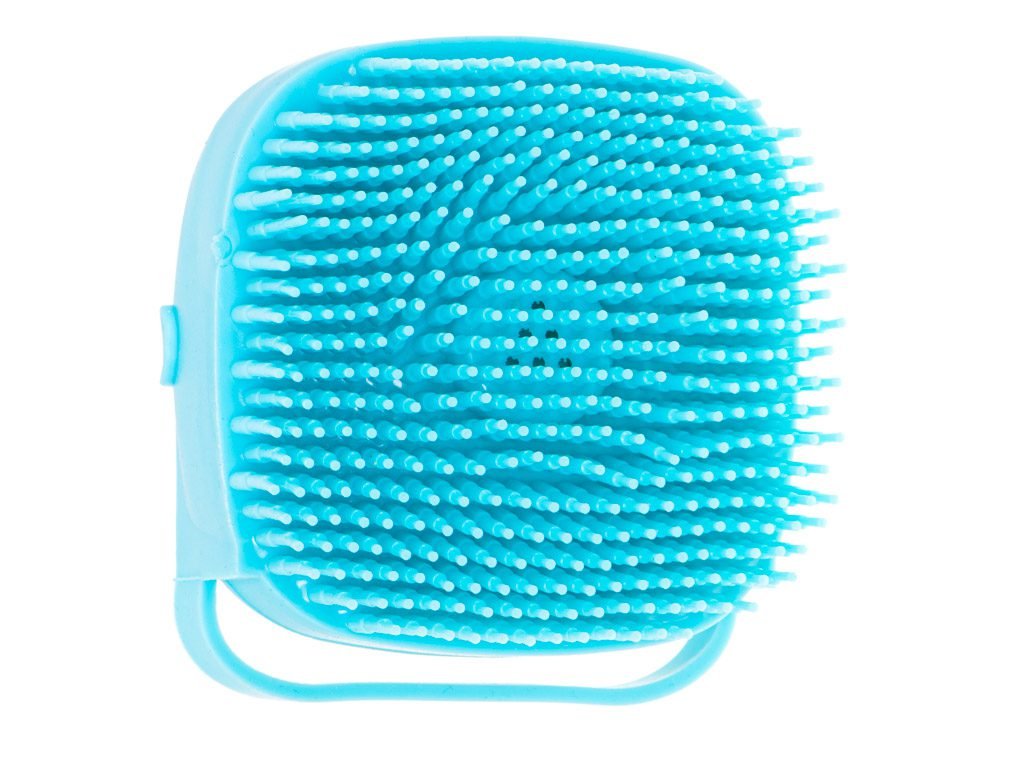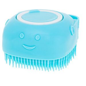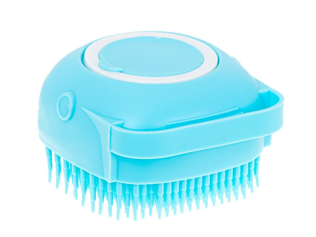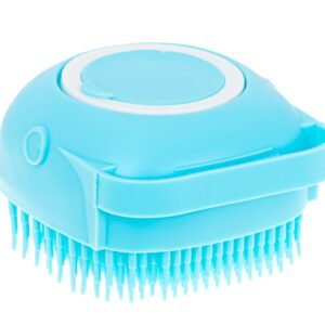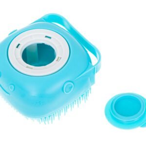 Perie din silicon cu dozator de sampon pentru spalare caini sau pisici, 7,5 x 7,5 cm, culoare albastra