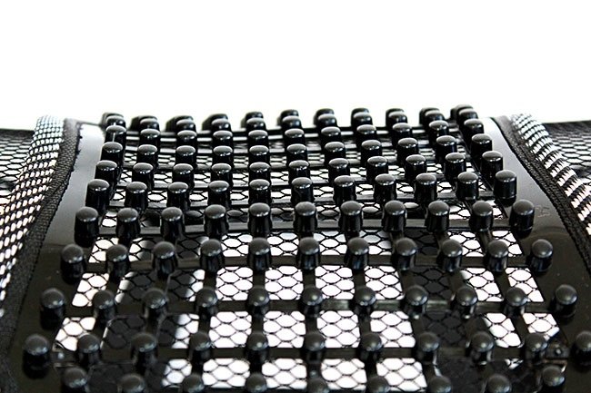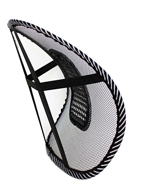 Perna pentru zona lombară din plasă fină. Asigură poziționarea corectă a coloanei vertebrale în timpul șederii prelungite în poziție așezată. Crește semnificativ confortul de a sta la serviciu. Filele de masaj vor face ca conducerea unei mașini sau orele lungi petrecute în fața computerului să fie și mai plăcute.