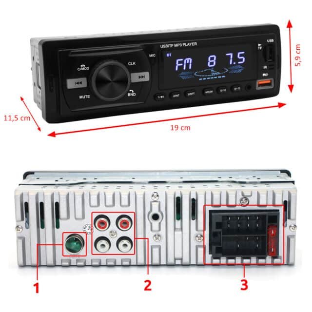 Radioul nostru are o dimensiune universală pentru mașini cu o nișă radio 1DIN. Descrierea instalării și conexiunii cablajului este descrisă în instrucțiunile incluse cu setul și este simplă și clară.