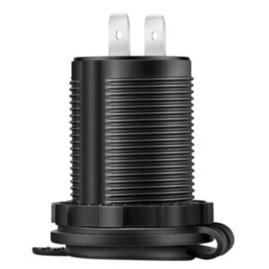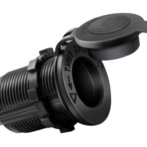 - Instalarea se face prin găurirea unui orificiu de montare pe o suprafață plană (de exemplu, cockpit), introducerea prizei și înșurubarea acesteia cu două șuruburi – perfect pentru montarea, de exemplu, în portbagajul unei mașini.