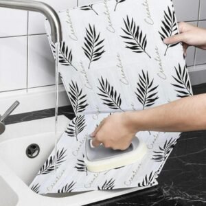 Covoraș din aluminiu, care protejează zona din jurul aragazului – un produs reutilizabil. Un gadget grozav pentru a ajuta la menținerea ordinii în jurul aragazului cu gaz. Utilizarea aluminiului garantează că alimentele sau grăsimea nu se vor lipi de covoraș în timpul gătirii. Covorașul este atât de ușor și flexibil încât poate fi pliat și depozitat cu ușurință. Ajută la menținerea ordonată a bucătăriei.