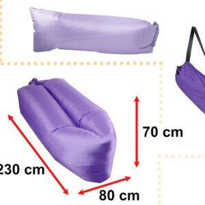 Saltea Autogonflabila “Lazy Bag” tip sezlong, 230 x 70cm, culoare Violet, pentru camping, plaja sau piscina
