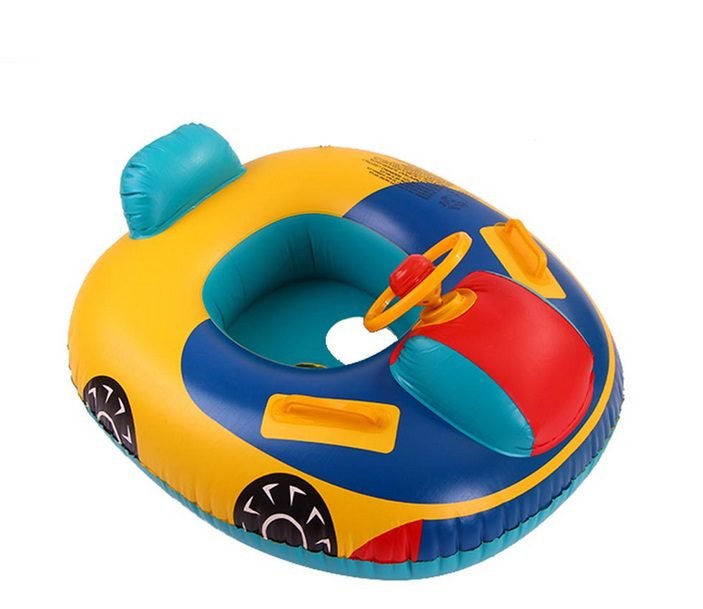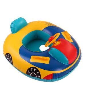 O barcă gonflabilă pentru copii în formă de mașină, realizată din PVC de înaltă calitate, care garantează durabilitatea.