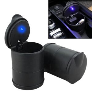 Scrumieră compactă pentru mașină cu iluminare din spate cu LED albastru. De asemenea, va fi un coș de gunoi perfect pentru mașini mici sau ca o scrumieră suplimentară acasă! LED-ul, iluminarea din spate activată automat, face mai ușoară utilizarea scrumierei pe timp de noapte, iar capacul închis previne răspândirea cenușii și mirosul neplăcut în vecinătatea sa! Se potrivește perfect într-un suport de capac pentru mașină, datorită căruia va rămâne ferm pe loc în timp ce conduceți!
