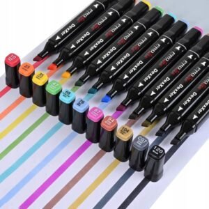 Un set de MARKERE PROFESIONALE în culori saturate, diverse este o propunere pentru toți cei care își încep aventura cu desenul și pentru cei care desenează în fiecare zi. Pigmentarea excelentă a cernelii cu alcool conținută în pixuri garantează că desenele realizate cu acestea vor fi saturate, clare și nu se vor estompa mult timp.