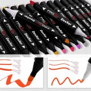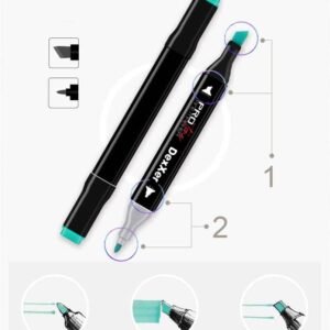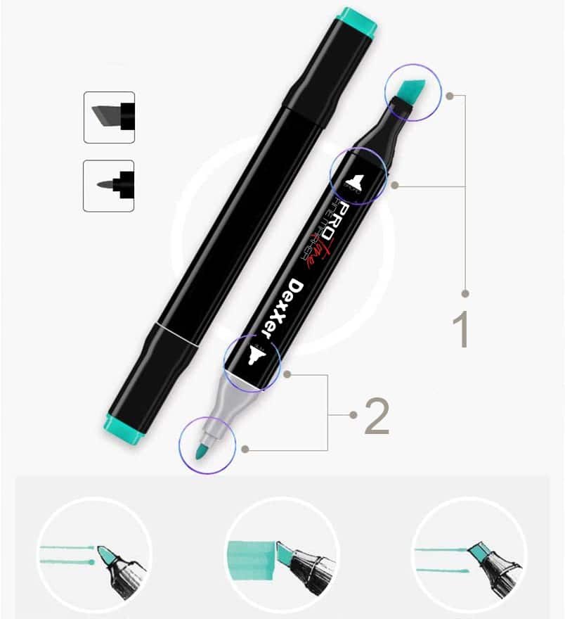 Două sfaturi – lat-plat și subțire – oferă posibilități creative enorme. Vârfurile sunt realizate din material rezistent la abraziune, astfel încât markerele vor rezista mult timp. Fibra vârfurilor nu se delaminează, nu se separă sau nu se scurge. Cartușul îmbibat cu cerneală a fost realizat într-un mod care asigură o distribuție uniformă a cernelii – fără a se usca , a vărsa sau a păta !