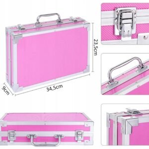 Acest produs iese în evidență față de alte seturi artistice pentru că este închis într-o valiză îngrijită, întărită, din plastic rezistent. Toate elementele setului sunt bine plasate în interior, iar totul poate fi închis cu încuietori puternice. Puteți lua setul cu dvs. oriunde datorită mânerului confortabil.