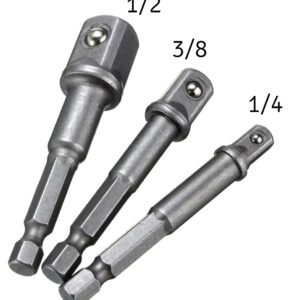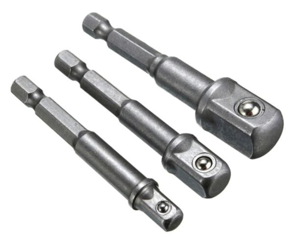 Set de trei adaptoare de șurubelniță în dimensiunile 1/2, 3/8 și 1/4. Reducerile vă permit să lucrați cu o șurubelniță cu capace. Fabricat din oțel solid pentru scule pentru rezistență ridicată și durată lungă de viață.