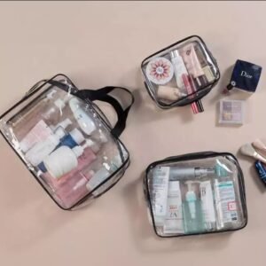 Un organizator turistic confortabil format din până la 3 elemente (organizatori). Toate sunt cu fermoar și au o mulțime de compartimente și buzunare. Este o modalitate excelentă de a vă menține organizate produsele cosmetice de zi cu zi. Sunt grozave și pentru călătorii, depozitând cu ușurință toate cele mai importante produse cosmetice și alte mici accesorii de acest tip, precum ruj, pudră, bețișoare sau pensule. Datorită designului inteligent, puteți încăpea în ele și lenjerie intimă și haine. Întregul lucru se va încadra cu ușurință în bagajul de mână și nu va ocupa atât de mult spațiu valoros. Închiderile cu fermoar fac mult mai dificilă pierderea lucrurilor mici transportate, păstrându-le în ordine. Cel mai mare element al setului are un mâner confortabil, datorită căruia este convenabil de transportat.