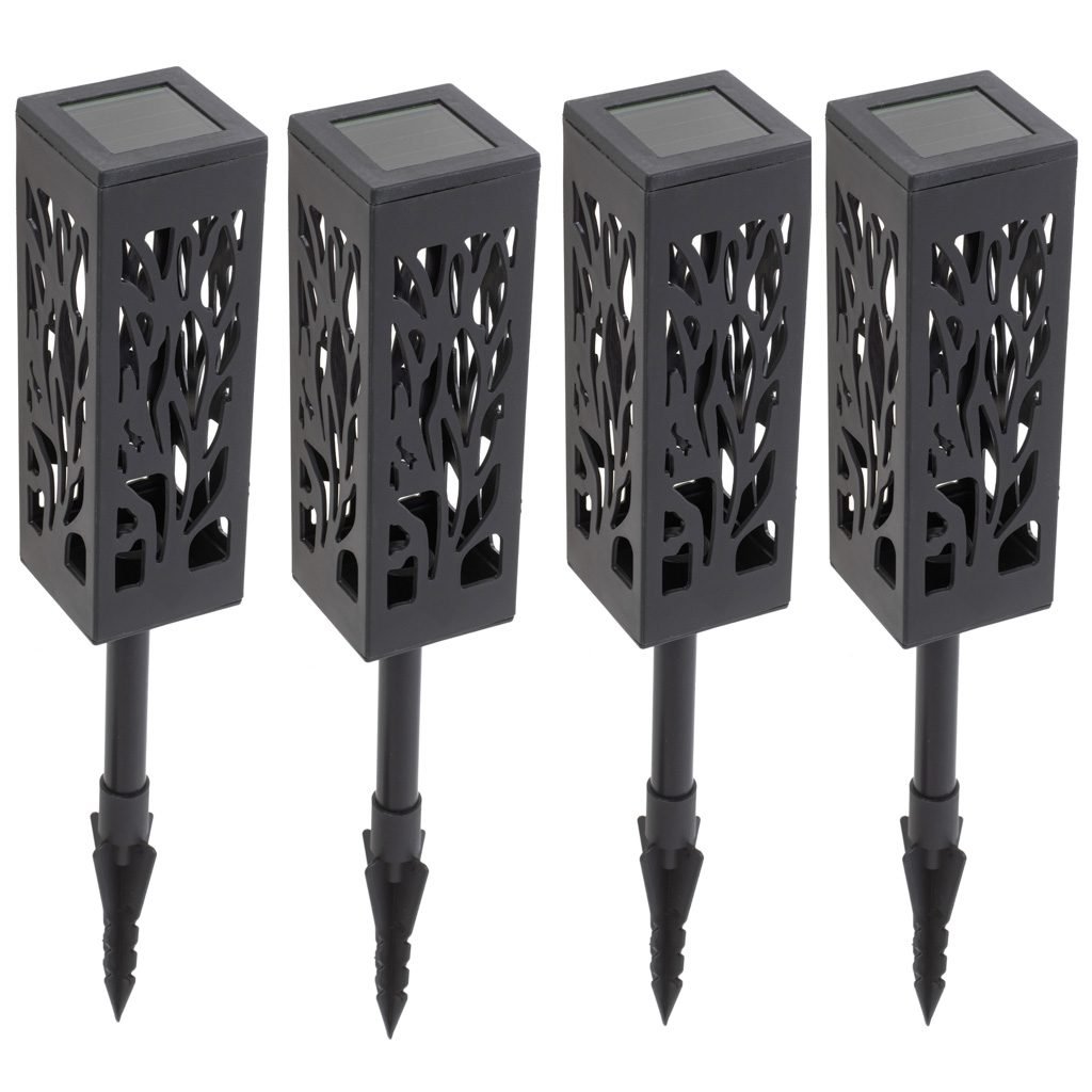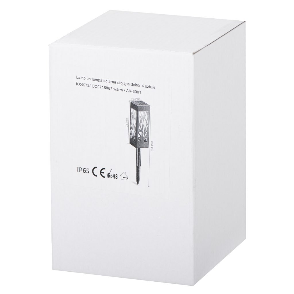 Lămpi solare de grădină pentru a fi introduse în pământ ambalate într-o cutie de carton.