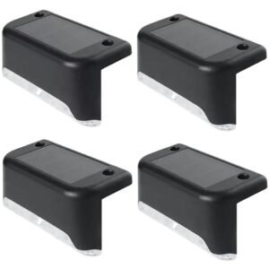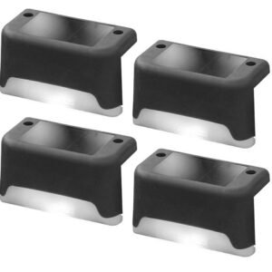 Un set de 4 lămpi de scară sau gard, alimentate de un panou solar încorporat. Fiecare dintre lămpi are o baterie încorporată reîncărcată de lumina soarelui, nu necesită putere suplimentară. Echipat cu LED-uri luminoase, alb rece. Lămpile au senzori de crepuscul care aprind automat LED-urile după amurg. Foarte ușor de instalat – hardware de montare inclus.