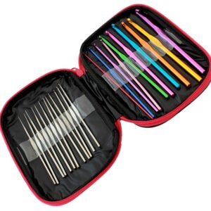 Un set de croșetat cu până la 50 de elemente. Un cadou perfect pentru pasionații de croșetat și broderie, adulti sau copii. Toate croșetele sunt fabricate din aluminiu solid și se potrivesc perfect în mână, făcându-le potrivite și pentru profesioniști. Carcasa practică cu fermoar are loc și pentru o serie de alte accesorii (ace, ace de siguranță, foarfece, riglă etc.).