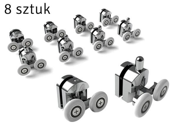Set 8 role duble cromate pentru cabine de dus. Se potrivește cu majoritatea tipurilor de cabine de dus disponibile în hipermarketurile romanesti de bricolaj. Fabricat din oțel inoxidabil, suplimentar cromat. Roți robuste din plastic rezistent la uzură.