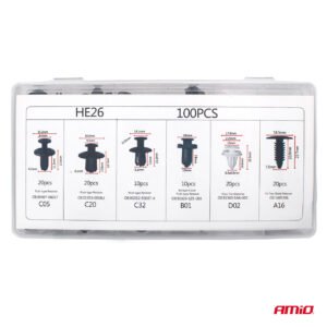 Set universal de 100 de piese diverse cleme auto pentru fixarea tapițeriei în mașină, aripi, bare de protecție, uși.