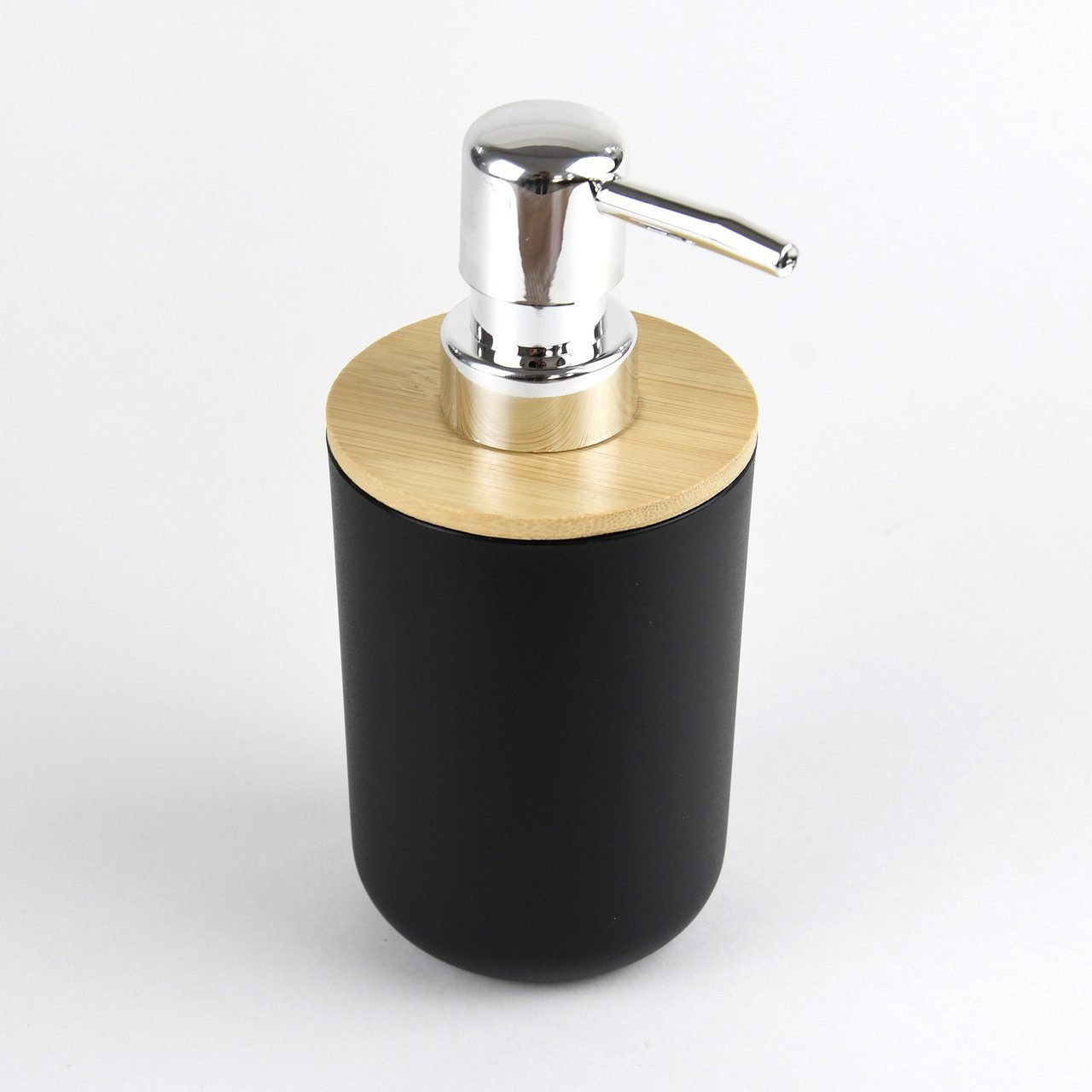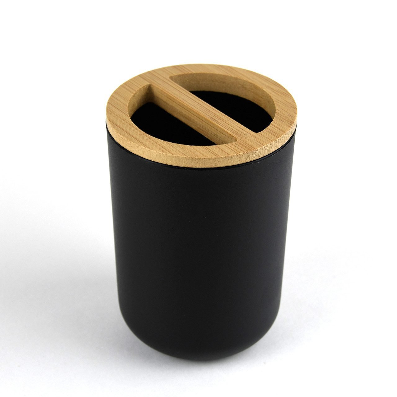 Set Elegant pentru baie format din 6 piese, ABS + lemn, culoare negru/maro