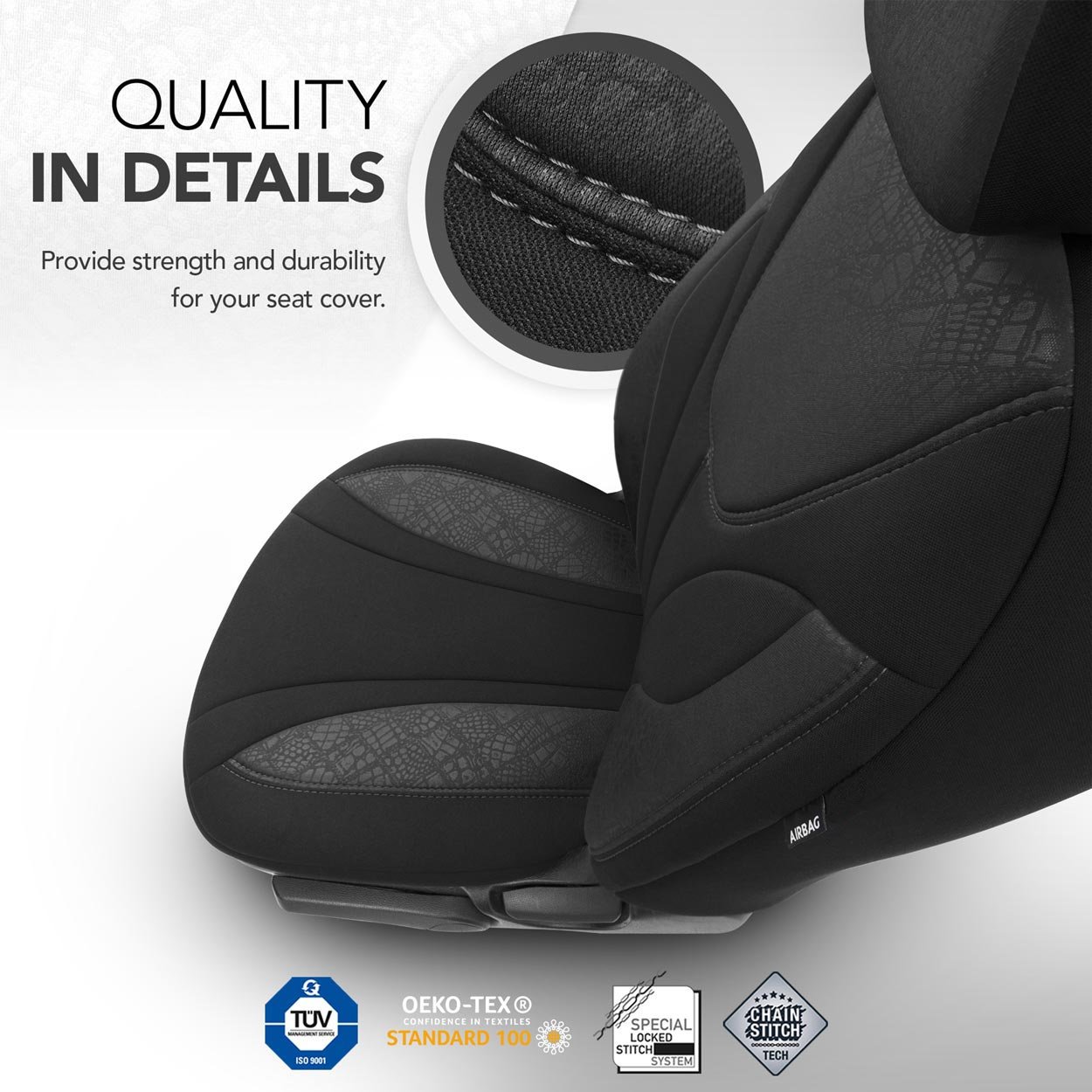 Husele standard au o cusătură AIRBAG certificată , ceea ce le face potrivite pentru mașinile cu airbag-uri laterale în scaune, precum și pentru scaunele standard. Datorită utilizării unei cusături speciale, acestea acoperă complet scaunele fără a perturba funcționarea AIRBAG-urilor. Desigur, această soluție a fost testată și certificată de mai multe ori .