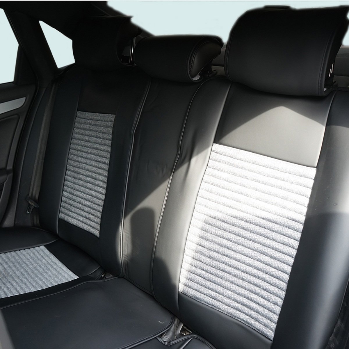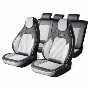 Realizate din piele ecologica de calitate superioara in combinatie cu insertii textile confortabile in zona de contact, husele asigura un echilibru optim intre durabilitate, ventilatie si confort. Materialele sunt rezistente la uzura, usor de curatat si protejeaza eficient scaunele impotriva murdariei si petelor. Setul este compatibil universal si se potriveste majoritatii autoturismelor. Include huse pentru tetiere tip perna si este livrat cu geanta pentru depozitare si transport.
