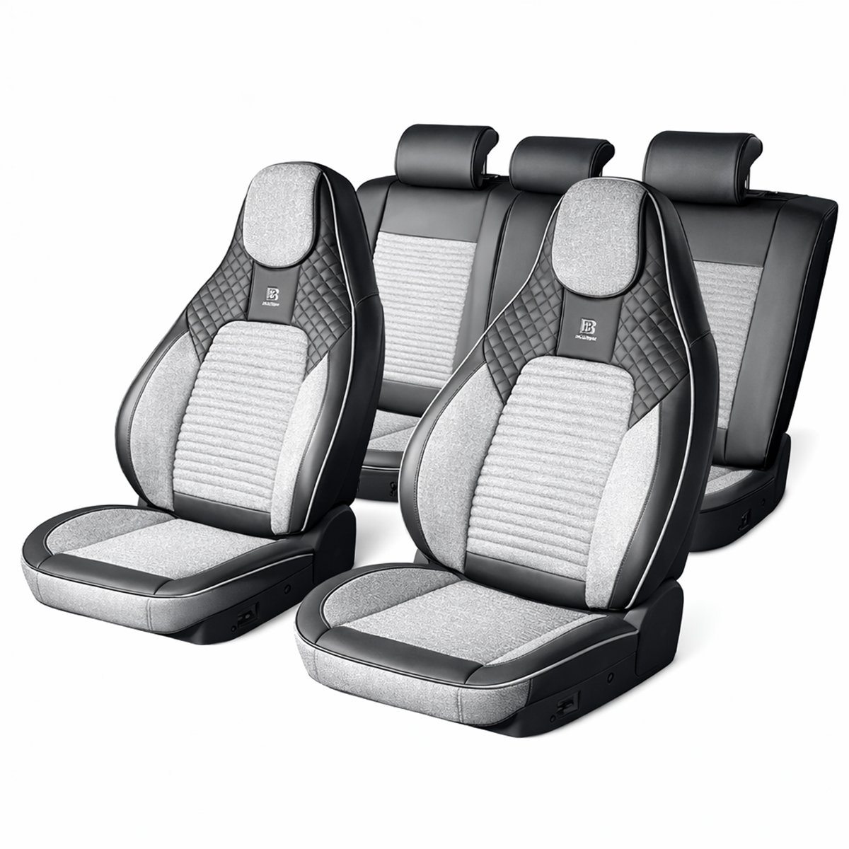 Set huse scaune auto Premium, model BLAZE Prime, design Sportiv, universale, ergonomice, Piele Ecologica cu insertii textile, culoare Negru/Gri