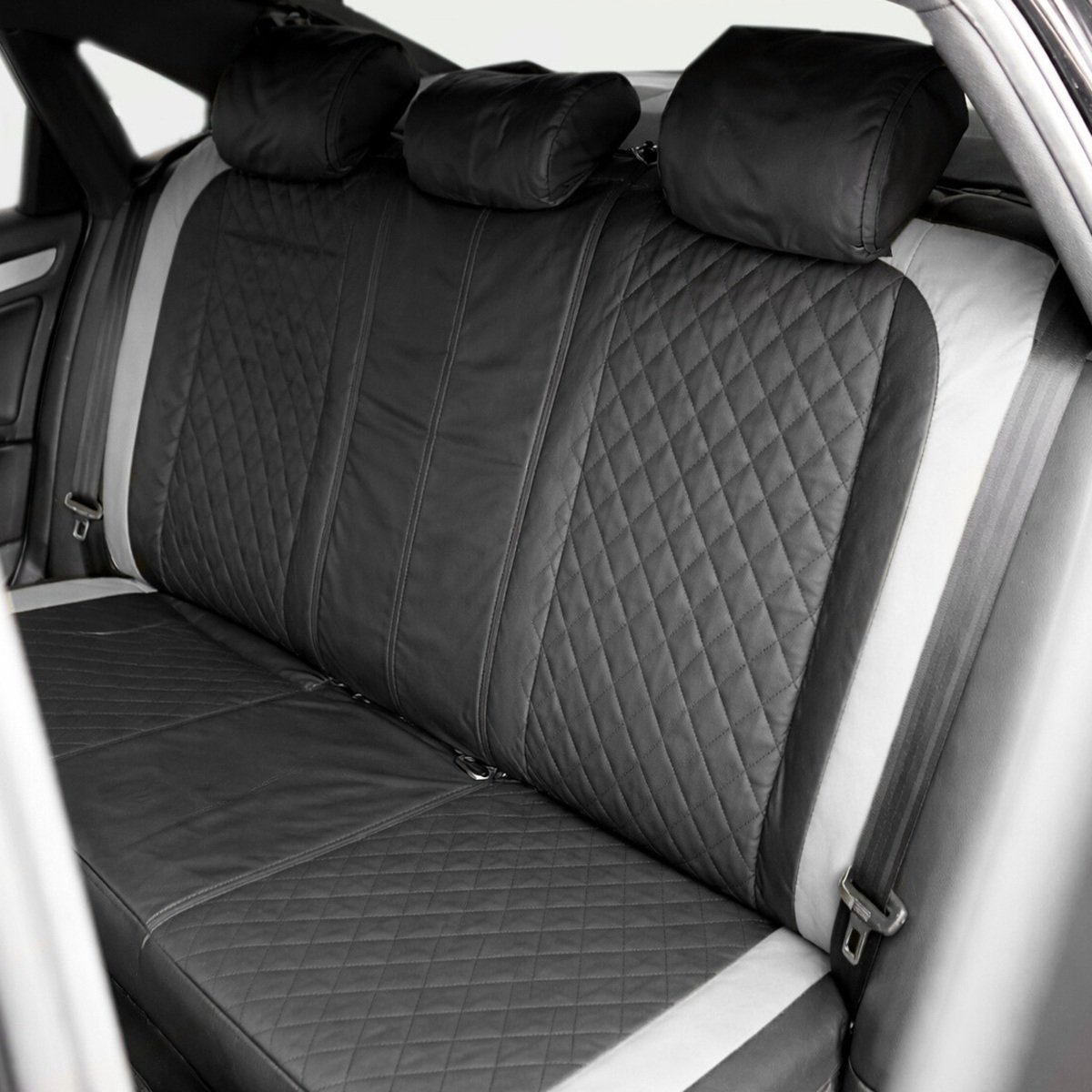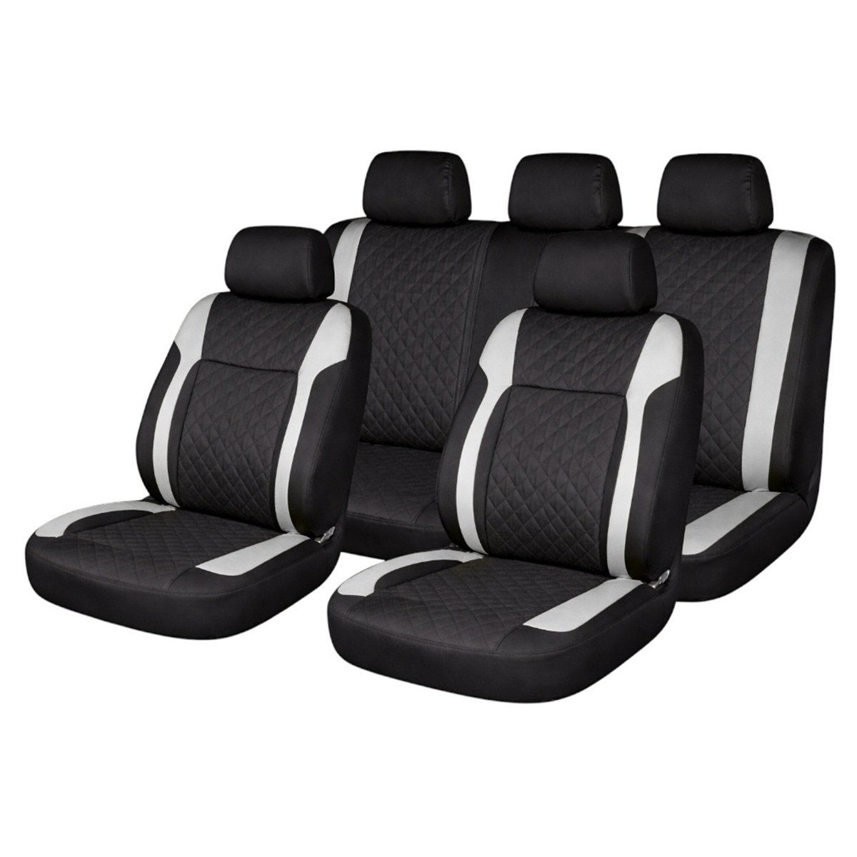 Set huse scaune auto Premium, model DIAMOND Core, design Sportiv, universale, ergonomice, Piele Ecologica Matlasata, culoare Negru/Gri