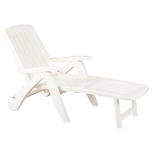 Sezlong de Plaja sau Gradina, reglabil, dimensiune 190 x 60 x 72 cm, material plastic, culoare Alb
