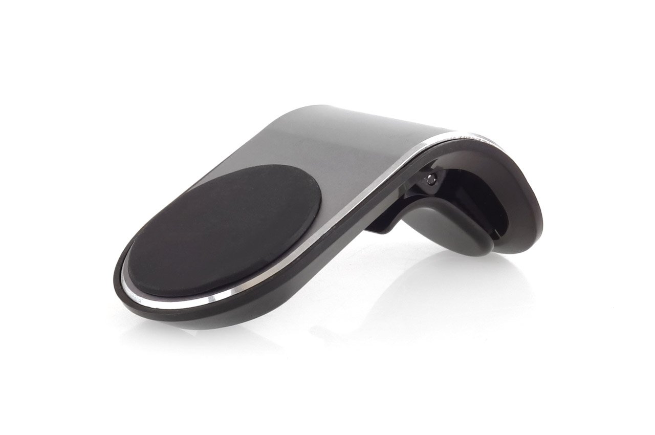 Suport de telefon magnetic de dimensiuni reduse cu prindere in girla masinii cu clema.