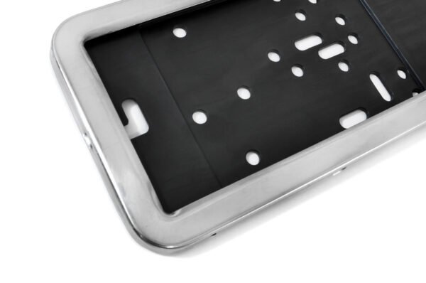 Suportul pentru numar de inmatriculare este confectionat la baza din plastic negru iar partea din fata (capacul) care face fixarea numarului de inmatriculare de suport este integral din OTEL inoxidabil – INOX. Structura de cristal face ca acest otel sa fie non-magnetic. Suportii sunt destinati pentru numerele de inmatriculare clasice omologate in Romania si in UE. Acest suport este de o calitate deosebita iar datorita materialului din care este fabricat se poate folosi pe toata durata de utilizare al autoturismului dvs.