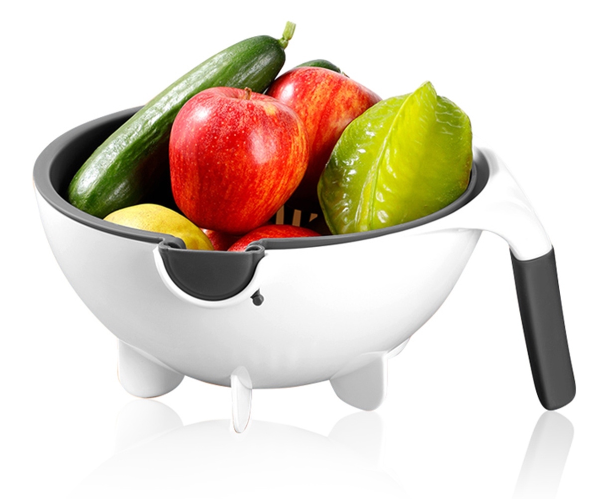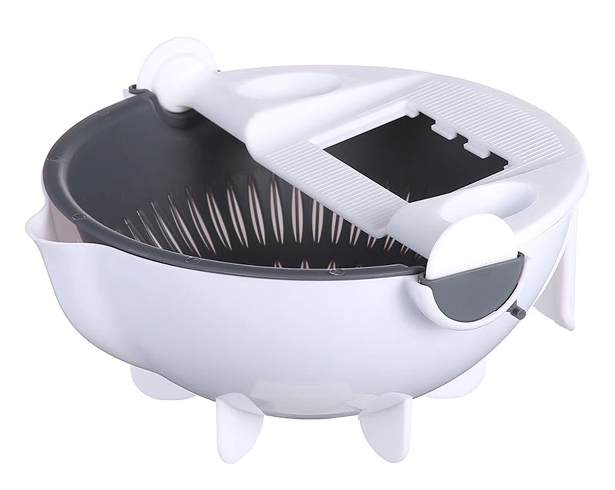 Tăietor de legume rotativ multifuncțional. Răzătoarea va tăia și rade perfect fructele și legumele pentru salată. Setul este echipat cu un drenator rotativ cu sita care faciliteaza eliminarea continua a excesului de apa. Setul include 5 lame înlocuibile adaptate diverselor tipuri de legume/fructe.