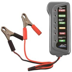Tester de baterie compact de 12 V. Vă permite să verificați nivelul de încărcare a bateriei pe baza tensiunii la bornele sale. Perfect ca instrument de diagnosticare simplu pentru a determina eficiența celulelor bateriei.