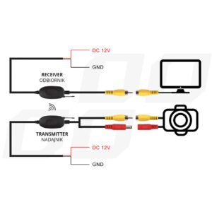 Modul receptor și transmițător wireless pentru camere de parcare. Aparatul functioneaza cu o instalatie electrica auto cu o tensiune de 12V. Un instrument excelent care vă permite să instalați un monitor în vehiculul nostru și să îl utilizați ca cameră de parcare. Aceasta este o soluție mult mai convenabilă decât senzorul de parcare standard care utilizează semnale sonore. Cu trusa noastră, asamblarea este extrem de simplă, iar parcarea în spații înguste devine o joacă de copii.