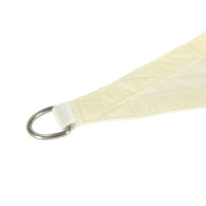 Velă de umbrire triunghiulară – Formă funcțională, colțuri întărite și mobilitate. Forma triunghiulară a velei de umbrire permite o adaptare flexibilă la orice spațiu, în timp ce colțurile special întărite cresc rezistența și tensiunea materialului. Marginile de montare întărite și inelele speciale în formă de D asigură stabilitatea și instalarea sigură .