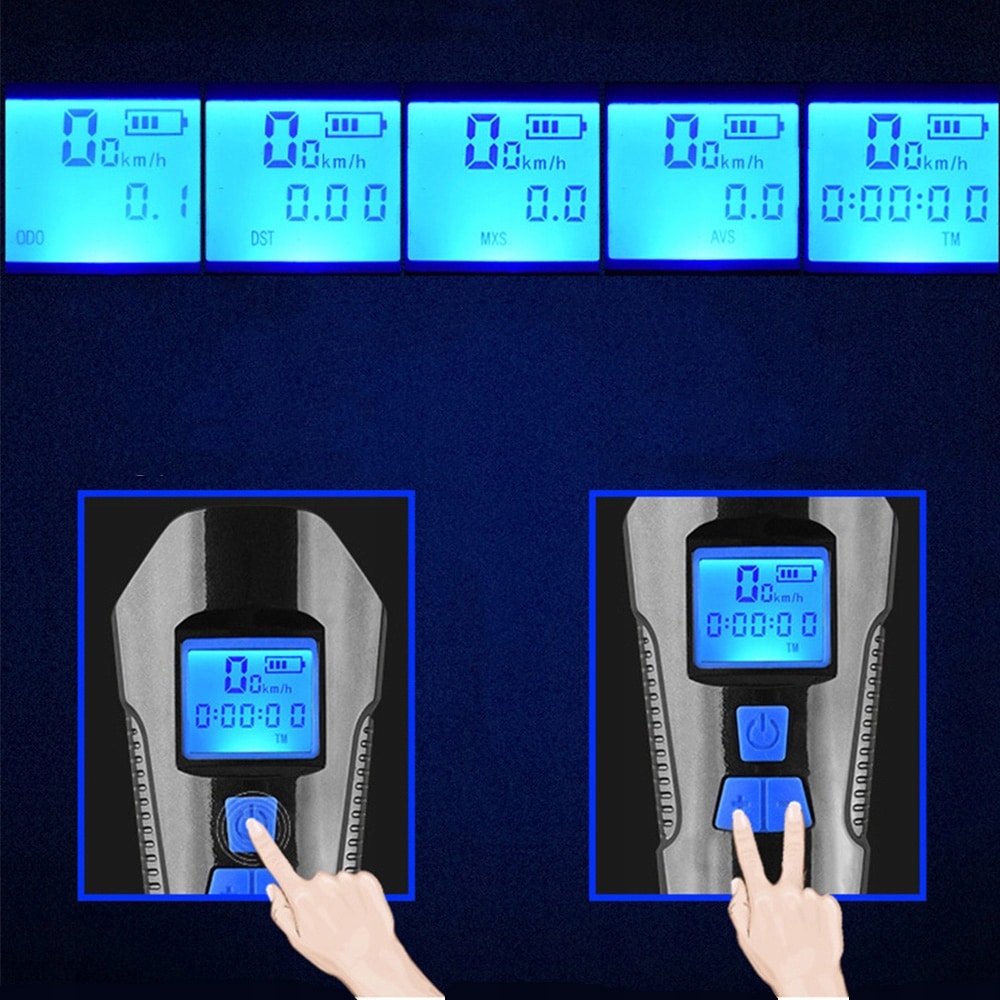 Cu toate acestea, o lampă de bicicletă cu baterie nu este doar o iluminare obișnuită – senzorul inclus în set și 5 moduri de măsurare încorporate îl fac un dispozitiv de înregistrare multifuncțional. Datorită acestuia, puteți verifica distanța parcursă (mod ODO), viteza medie (AVS), distanța parcursă pe o rută (DST), timpul de condus (TM) și viteza maximă (MXS). Toate acestea sunt prezentate pe un afișaj clar, iluminat din spate. Contorul este operat folosind butoane mari, rezistente la apă, de pe dispozitiv.